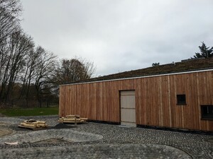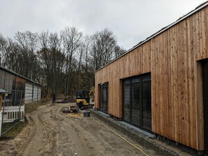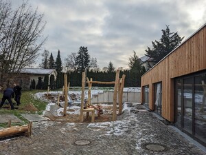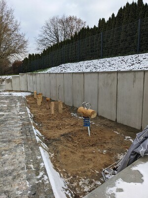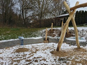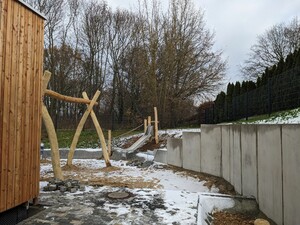 Nach fast 2,5 Jahren Planung ging im April 2025 die Baustelle für die Freianlagen der Kita "Am Barnimpanorama" in Wandlitz los. Seitdem wurde unter anderem das neue Leitungssystem hergestellt, die Winkelstützen zur Abfangung des angrenzenden Grundstücks gesetzt und das Pflaster der befestigten Flächen eingebaut.