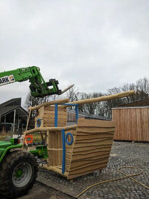 Mitte November ging es dann an den wichtigsten Aspekt der Kita-Außenfläche: die Spielgeräte! Neben einem Spielschiff finden eine Schaukel, eine Rutsche, verschiedene Balancier- und Wippgeräte, sowie eine Maltafel ihren Platz.
