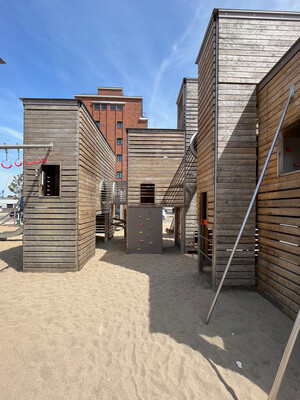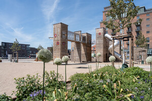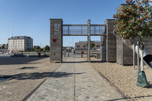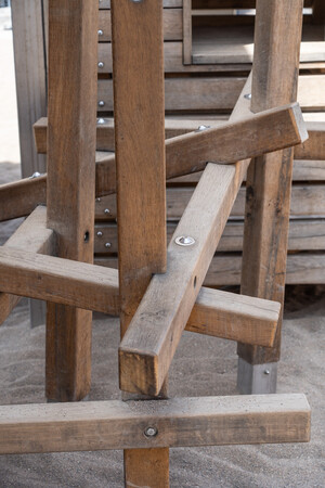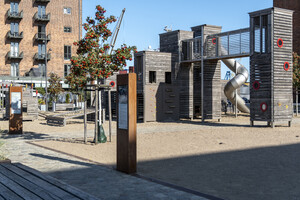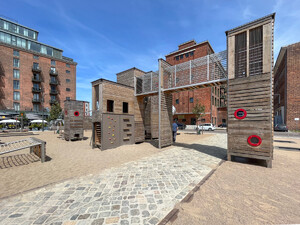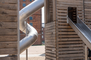 Durch das architektonische Raster und die Analogie des Holzlagerplatzes wird hier ein einzigartiger Spielplatz geschaffen, welcher aus der Historie und der eigenen Identität des Ortes geschaffen wird und diese in Zukunft neu prägen wird. Sowohl der Spielwert als auch die hochqualitative Umsetzung in Eichenholz und Edelstahl verleihen dem Spielensemble zudem eine hohe Nachhaltigkeit und Wertigkeit..