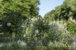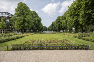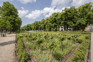 Das historische Gartenbild mit seiner markanten Rahmung aus drei Lindenreihen an den Längsseiten konnte bewahrt werden; fehlende Exemplare wurden durch Neupflanzungen ersetzt. Hochstammrosen in Beeten mit einer üppigen Staudenunterpflanzung prägen den mittleren Bereich. Insgesamt wurden rund 4200 Beetrosen, 200 Hochstammrosen, 9500 Stauden, 4800 Heckenpflanzen sowie etwa 6000 Blumenzwiebeln neu gesetzt. So erhielt die Anlage ihre ursprüngliche Farbigkeit und Blütenfülle zurück.