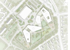 1.Preis zusammen mit TRU Architekten, BerlinDas Freiraumkonzept schreibt die neu geschaffenen Parkflächen formal und qualitativ bis an den Busbahnhof fort und versteht die neu geschaffenen Baukörper als integrativen Bestandteil der Parklandschaft. So entstehen neue Synergien aus Landschaft und Gebäude, sowie bestehender Topografie und umgebender Maßstäblichkeit, welche einen harmonischen Campus mit hoher Identität formen. Zentraler Bestandteil ist die Campusachse (Nord-Süd-Verbindung), welche sich im Zentrum des Campus zu einem großzügigen Campusplatz öffnet. Dieser schafft als Drehscheibe zwischen den Neubauten die Adresse des Ensembles. Die Campusachse wird konsequent von PKW-Verkehr freigehalten und ist eine reine Fuß- und Radverbindung. Folgerichtig erfolgt die Anlieferung der Schulen über den neu geschaffenen Kreisverkehr (von der Rückseite) und auch die Erschließung der Sporthalle und die Hol- und Bringsituation werden über die Süntelstraße geregelt. Die Campusachse besticht durch ein System von grünen, baumbestandenen Intarsien, welche differenzierte Raumsequenzen produzieren und durch ihre Anordnung für Orientierung sorgen. Sitzgelegenheiten, Fahrradständer und weitere Ausstattungen werden an den „Inseln“ und den Randbereichen der Campusachse angeordnet. Durch die Überhöhung oder Absenkung der Intarsien entsteht ein spannendes Raumgefüge, welches durch ein abwechslungsreiches Spiel aus sonnigen und schattigen Bereichen komplettiert wird. Die Inseln sind zudem so konzipiert, dass diese das anfallende Niederschlagswasser aufnehmen und versickern. Die Schulhöfe leiten sich formal von der Geometrie der Gebäude ab, welches zu einem spannungsvollen Innen-Außenraum-Verhältnis führt. Trotz der ähnlichen Formensprache werden die Höfe je nach Bedarf mit unterschiedlichen Nutzungen belegt und entwickeln dadurch ihren eigenen Charakter in einem harmonischen Gesamtensemble. Grüne Klassenzimmer, Schulgärten, Spiel- und Aufenthaltsbereiche werden sensibel in die Gestaltung integriert. Die bestehende Topografie wird als großes Raumpotential verstanden und seicht zum Campusplatz geführt. Diese und sämtliche Zugänge liegen auf einem Niveau, wodurch der gesamte Campus barrierefrei hergestellt werden kann.