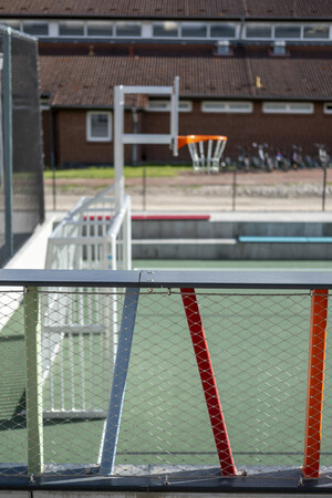Besonderen Wert legt der Entwurf auf großzügige Freiflächen, die sowohl pädagogisch als auch freizeitbezogen genutzt werden können. Der neue Schulgarten bietet Raum für praktischen Unterricht, Naturerfahrungen und Projektarbeit. Ergänzt wird er durch Spiel- und Bewegungsbereiche, die nach Altersgruppen und Nutzungsarten gestaffelt sind: vom ruhigeren Spielen der jüngeren Grundschulkinder bis zu dynamischen Angeboten für Hort- und Jugendclubnutzende. Unterschiedliche Beläge, modellierte Geländebereiche und eine abwechslungsreiche Ausstattung schaffen vielfältige Erfahrungsräume. Die Bepflanzung orientiert sich an einer klaren Gliederung aus Schatten spendenden Großbäumen, farbigen Strauch- und Staudenbereichen sowie offenen Rasenflächen. Sie sorgt nicht nur für ein angenehmes Mikroklima, sondern stärkt auch die Aufenthaltsqualität der Außenräume im Tagesverlauf. Gleichzeitig fügen sich die Pflanzstrukturen sensibel in die bestehende Umgebung ein und ermöglichen natürliche Rückzugsorte und ruhige Lerninseln im Freien.
